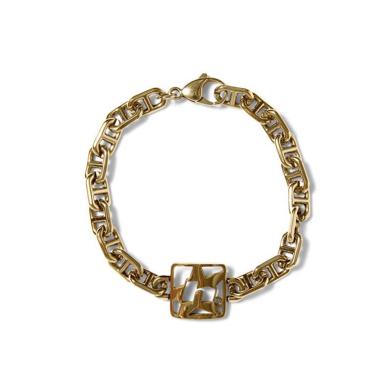 Composé d'un maillage link personnalisé et d'une fermeture solide à clapet, ce bracelet propose aussi un détail graphique "H-Star" gravé, emblème subtil de la marque pour affirmer ton style skating.
