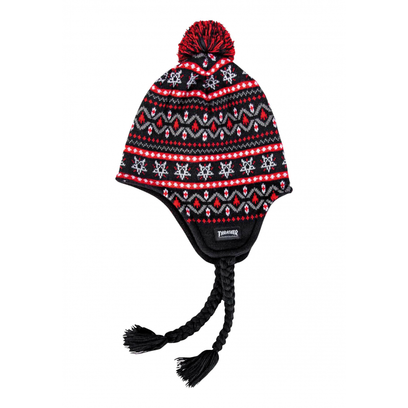 THRASHER BEANIE MAGAZINE LOGO SHERPA BLACK RED