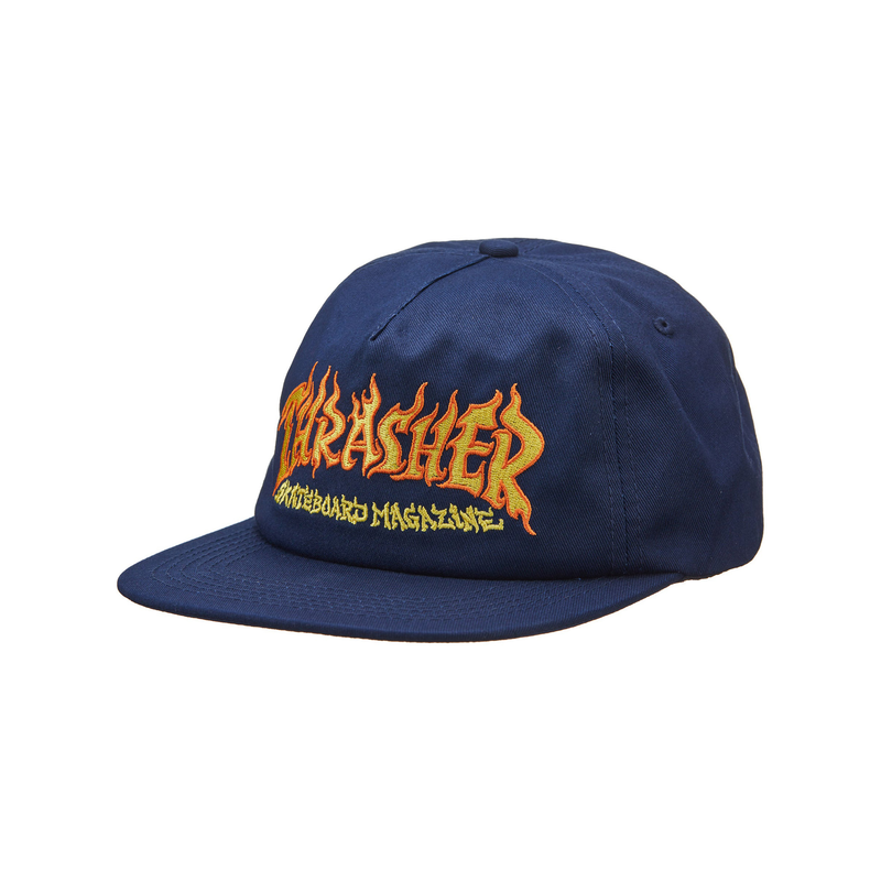 THRASHER CAP FIRE LOGO SNAPBACK NAVY