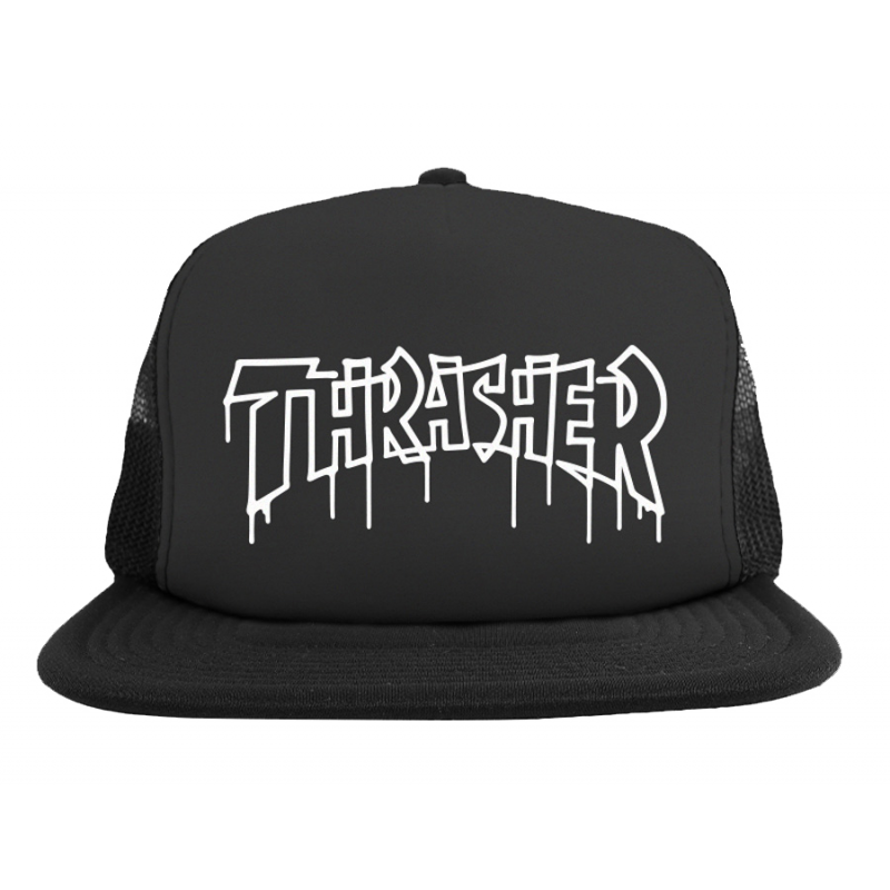 Affiche ton attachement à la culture skate avec la trucker "One Liner" noire de Thrasher Magazine, dotée d'un visuel signature imprimé en centre de frontpanel, typique de la ligne One Liner.