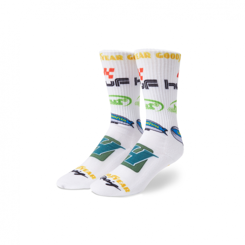 Chaussette de la marque Huf en collaboration avec Goodyear, imprimé sur la chaussette.