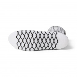 Le motif représentant une clôture fracturée en jacquard est encore plus visible sur fond blanc, créant un visuel poignant et esthétique.