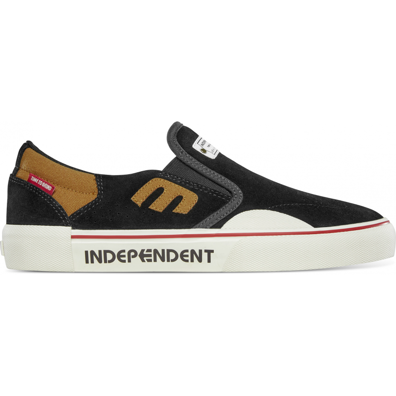 Chaussure de la marque Etnies en collaboration avec Independent Trucks, composition suede/toile et une construction semelle vulcanisée, modèle Marana slip-on (sans lacets) forme d'un chausson.