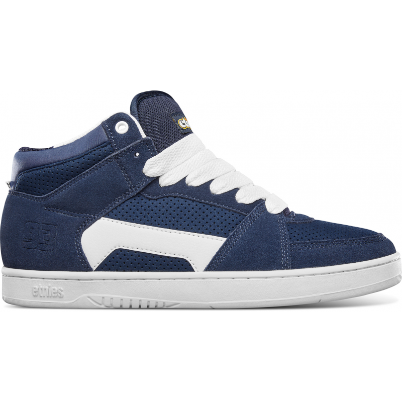 Le modèle Etnies MC Rap Hi (Navy/White) redéfinit la chaussure de skate mi-haute avec une construction pensée pour rider : tige renforcée "Force Shield", simples coutures triples et embout roulé pour tenir sous le grip.