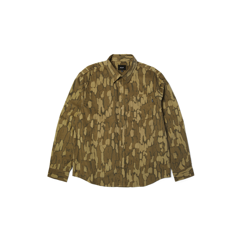 La HUF Warped Camo Corduroy Shirt revisite la chemise workwear classique avec une touche street élégante et texturée.