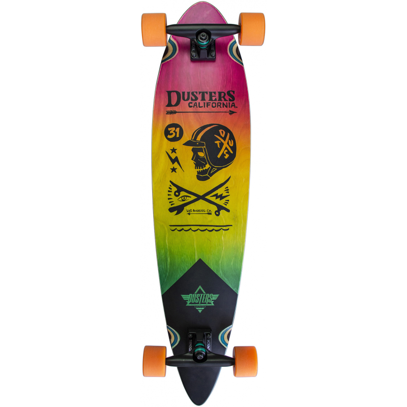 DUSTERS COMPLETE LONGBOARD MOTO FADES 37 PINK ORANGE TEAL