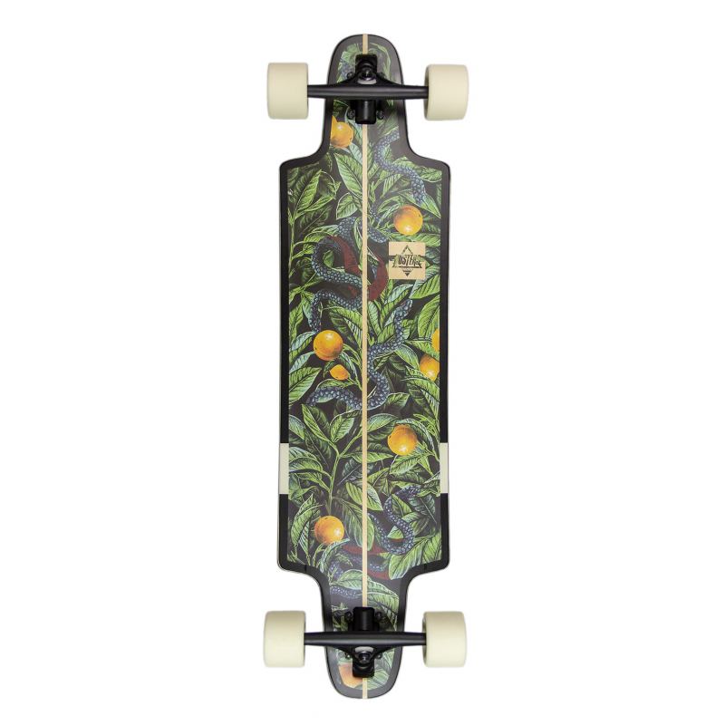 Longboard complet de la marque Duster, Trucks inversé et sérigraphier sous la planche, idéale pour le cruising et le dancing.