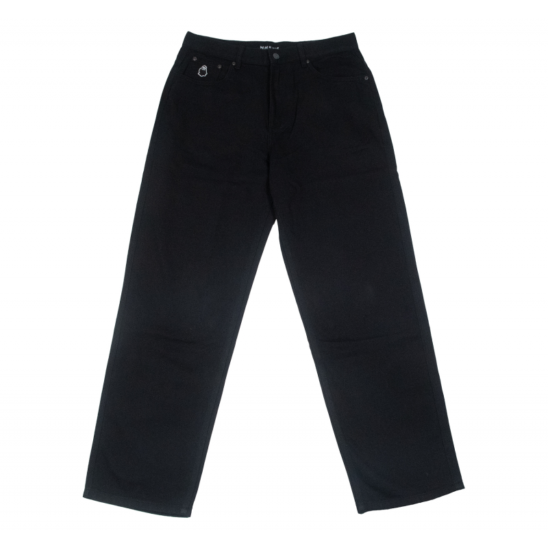 Le Bigfoot Black Coloured Denim de NNSNS incarne une esthétique skate intemporelle avec son noir profond et sa coupe décontractée.