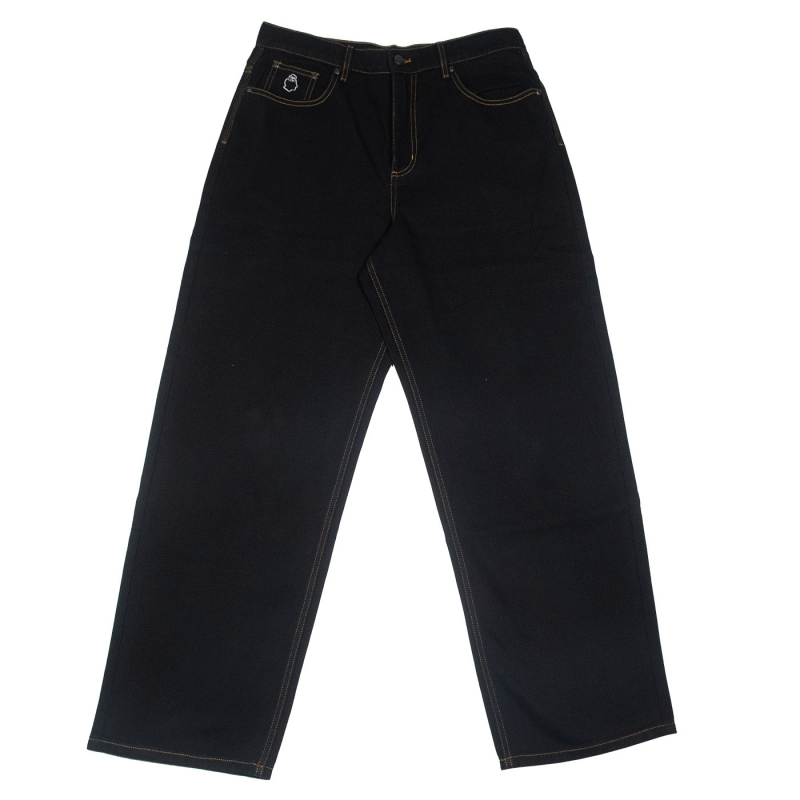 Conçu en denim noir de qualité, il offre une coupe large et confortable qui laisse une grande liberté de mouvement, idéale aussi bien pour les sessions au skatepark que pour un look streetwear assumé au quotidien.