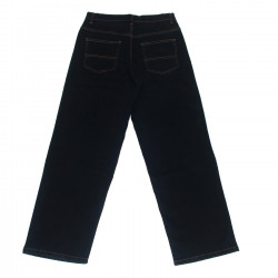 Conçu en denim stretch (mélange de coton avec de l'élasthanne), il épouse les mouvements tout en gardant sa tenue, contrairement aux jeans rigides.