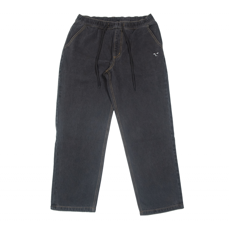 Le pantalon NNSNS Cyclops Easy Black Washed Denim combine confort et style avec sa coupe relax et sa taille élastique ajustable par cordon.