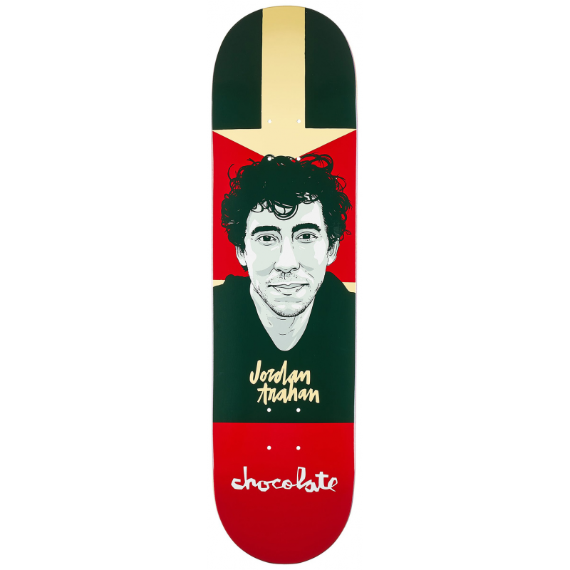 Plateau skateboard de la marque Chocolate, sérigraphie sous le dessous de la planche, modèle Portrait, Jordan TRAHAN signature.
