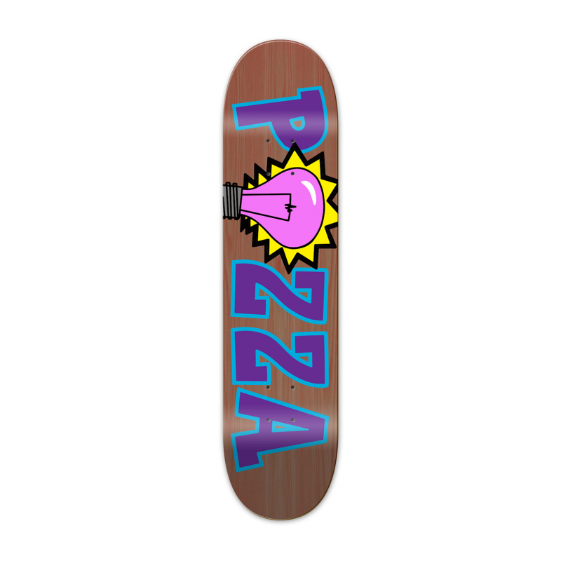 Plateau skateboard de la marque Pizza skateboard, sérigraphie sous la planche.