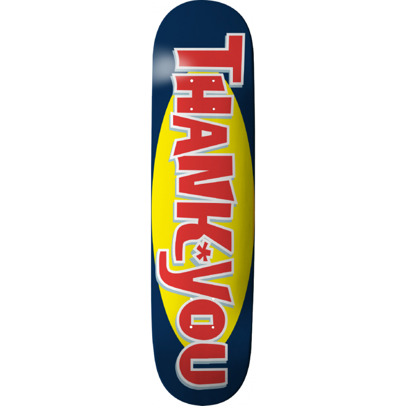 Plateau skateboard de la marque THANK YOU, sérigraphie sous la planche.