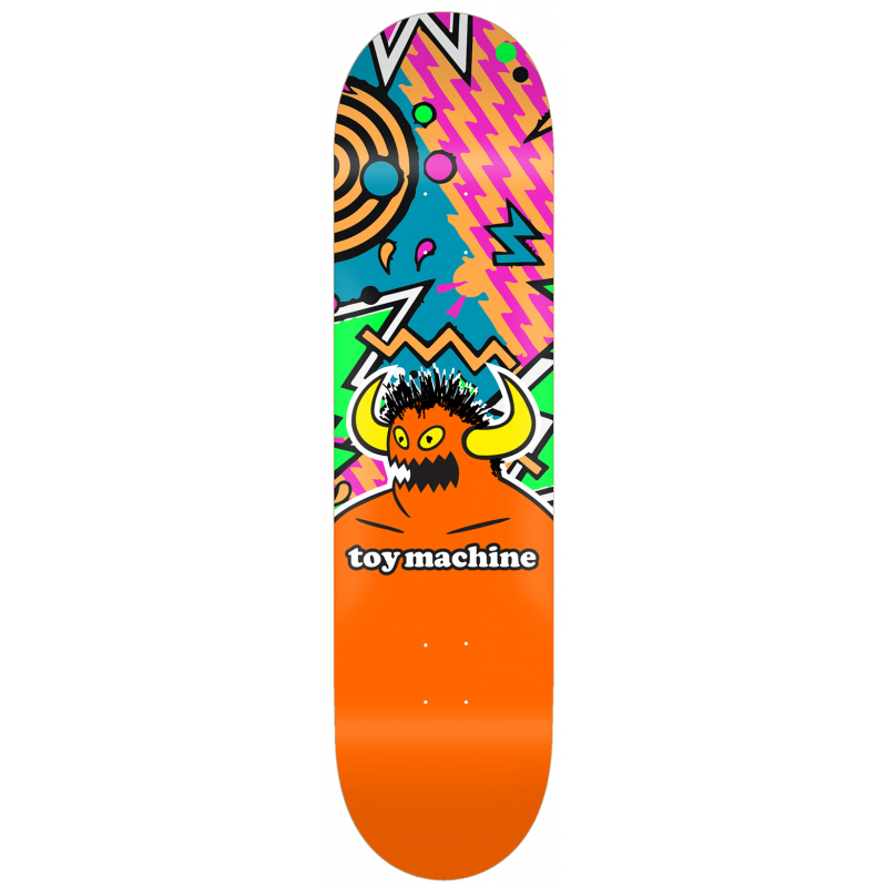 Plateau skateboard de la marque Toy machine, sérigraphie en dessous de la planche.