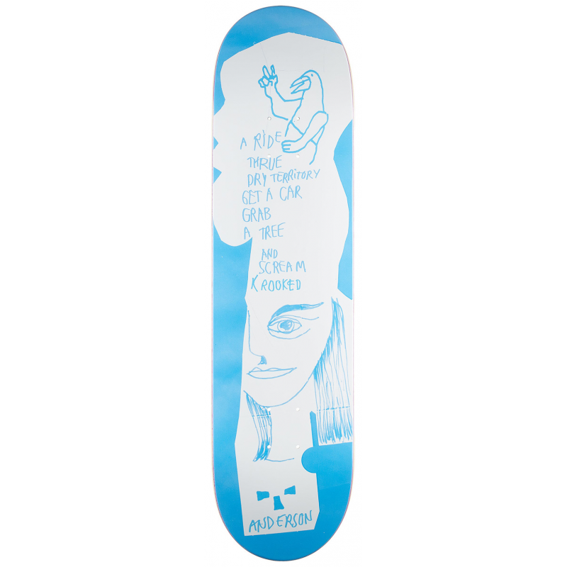 Planche skate de la marque KROOKED, illustration sous le plateau, Brian ANDERSON signature.