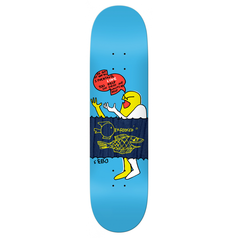 Planche skate de la marque KROOKED, illustration sous le plateau, Sebo WALKER signature.