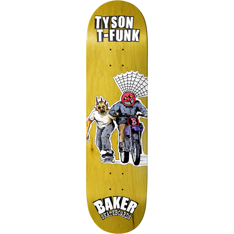 Plateau skateboard de la marque Baker, illustration dessinée par Mike Gigliotti, Tristan FUNKHOUSER "T-FUNK" et Tyson PETERSON signature.
