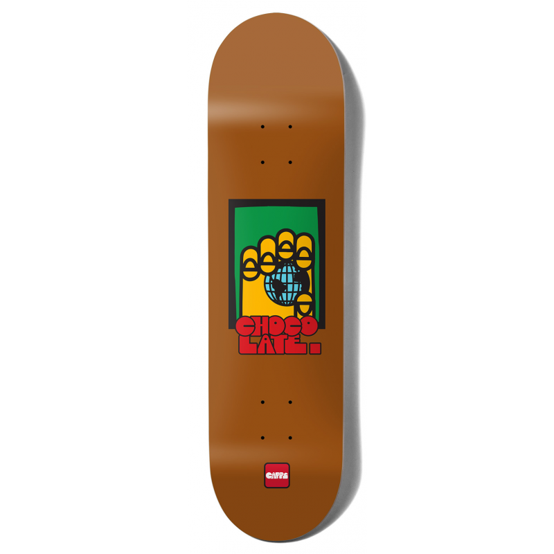 Planche de skate de la marque Chocolate, sérigraphie sous le plateau, modèle Wolrdwide, James CAPPS signature.