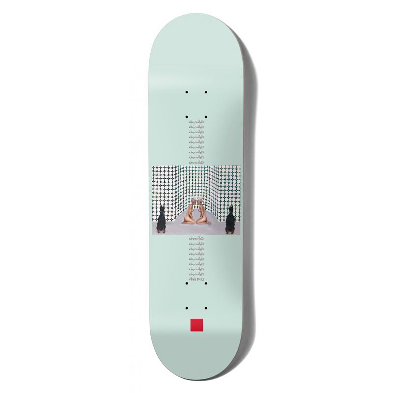 Planche de skate de la marque Chocolate, sérigraphie sous le plateau, Modèle L8rgirl Doberman, Stevie PEREZ signature.