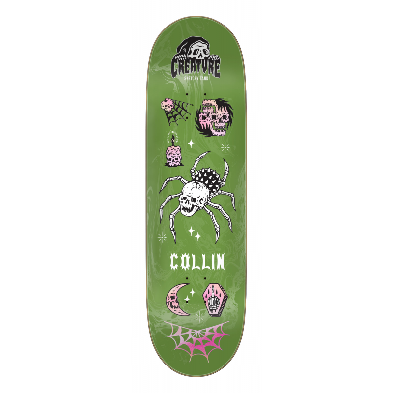 Planche skate de la marque Creature, sérigraphie sous le plateau, construction VX, Collin PROVOST signature.