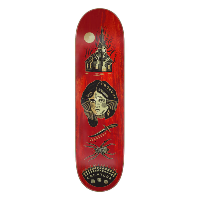 Planche skate de la marque Creature, illustration sous la planche, Collin PROVOST signature.