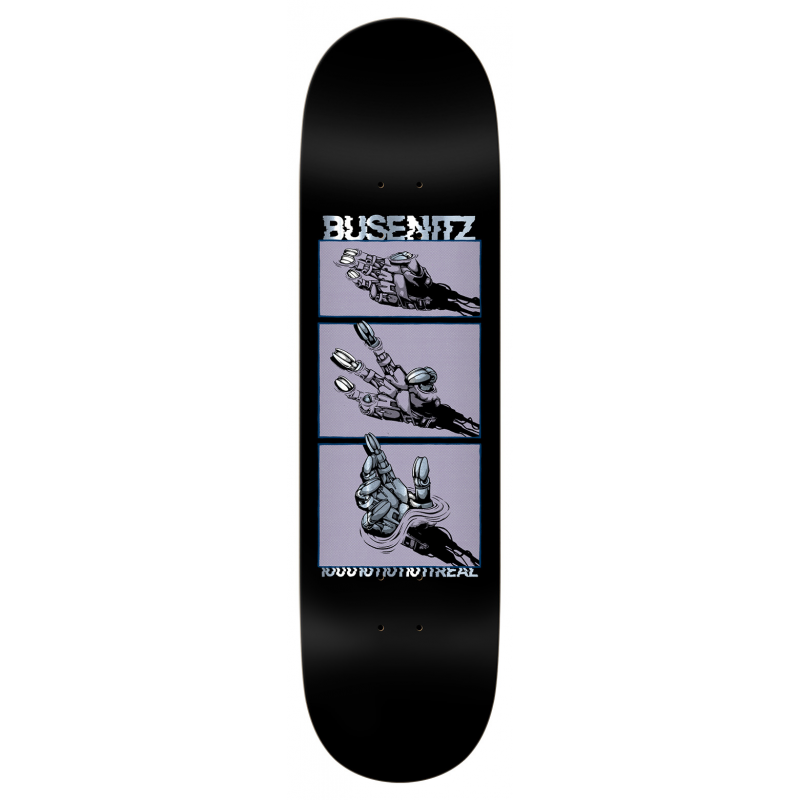 Plateau skateboard de la marque REAL, illustration sous la planche, Dennis BUSENITZ Signature.
