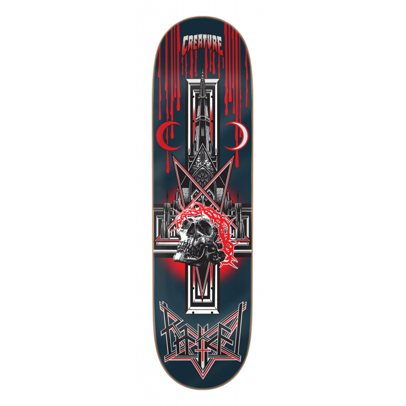 Planche skate de la marque Creature, illustration sous la planche, Kevin BAEKKEL signature.