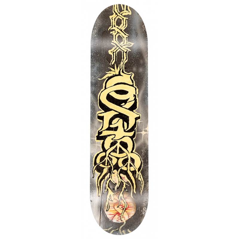 Planche de skate de la marque GX 1000, illustration sous le plateau réalisée par l'artiste SAVIE.