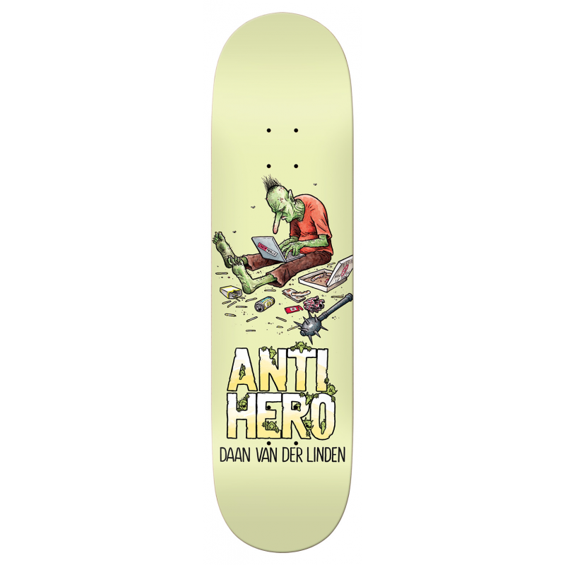 Plateau skateboard de la marque Antihero, illustration sous la planche. Modèle "Trolls ", Daan VAN DER LINDEN signature.