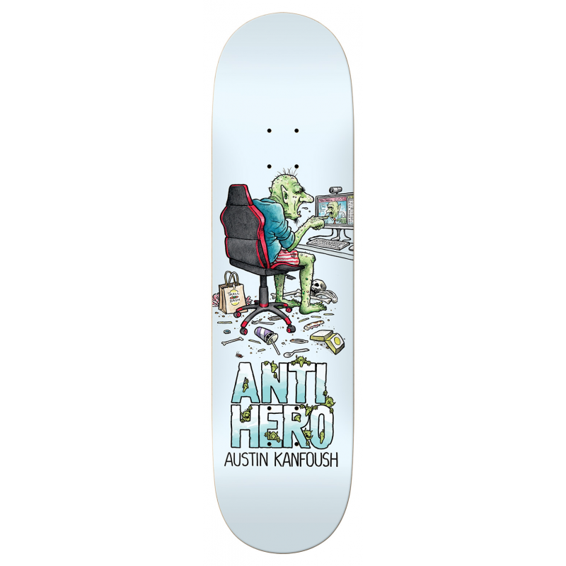 Plateau skateboard de la marque Antihero, illustration sous la planche. Modèle "Trolls ", Austin KANFOUSH signature.