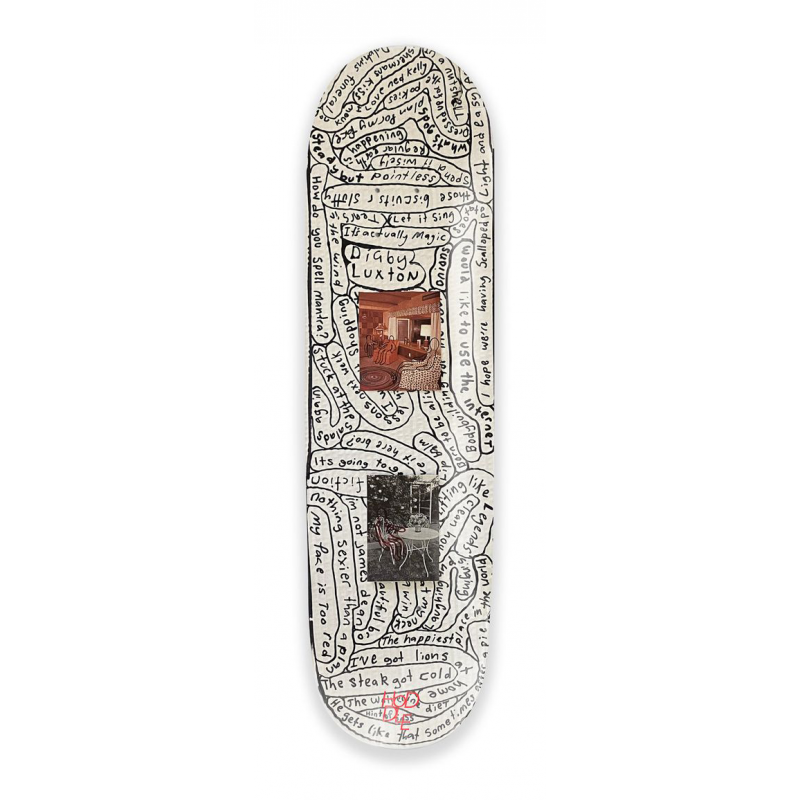 Planche de skate de la marque Hoodle, illustration sous le plateau et réalisée par l'artiste Shannon Rush, Digby LUXTON signature.
