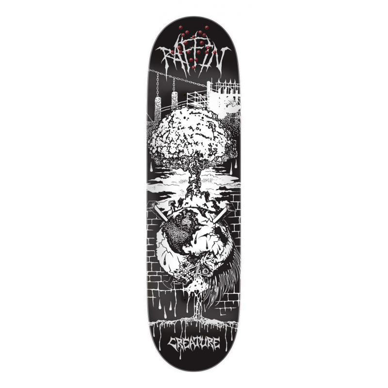 Planche skate de la marque Creature, illustration sous la planche, Peter RAFFIN signature.