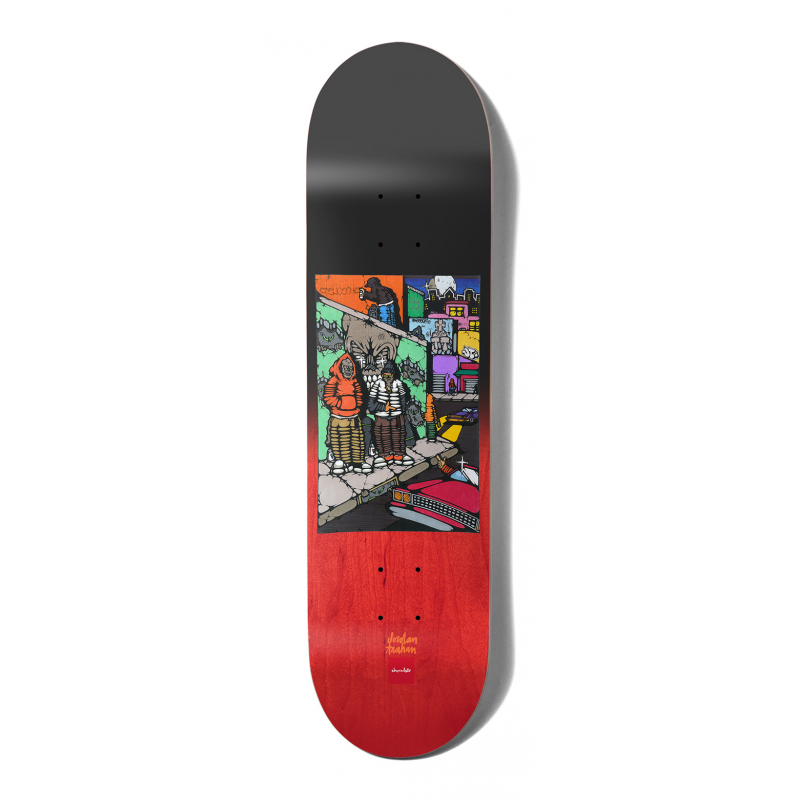 Planche de skate de la marque Chocolate, illustration sous le plateau, Jordan TRAHAN signature.