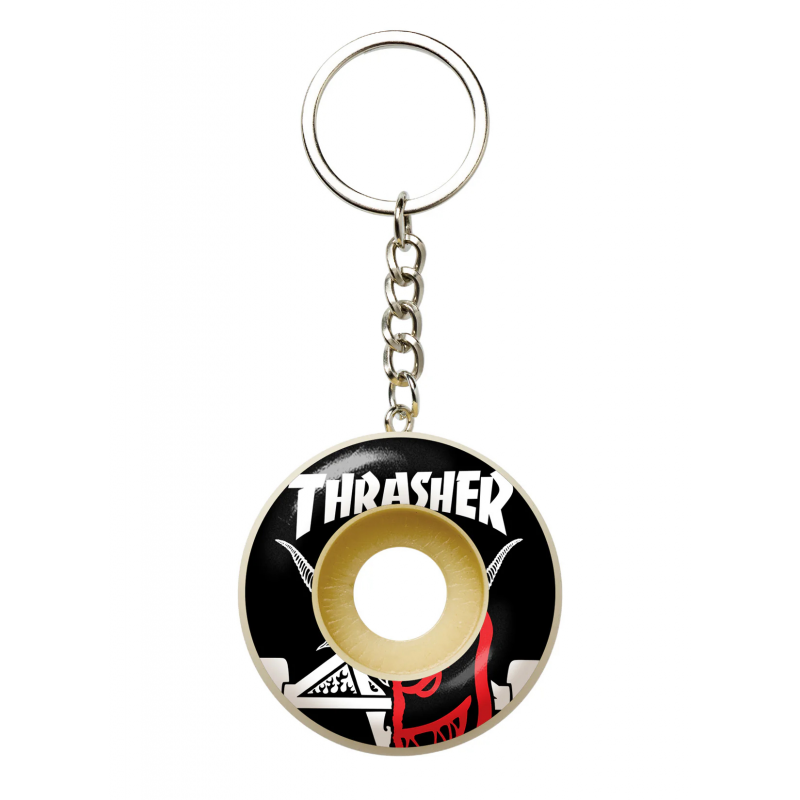 Fidèle aux codes des deux légendes du skate, ce porte-clés reprend l'iconique forme d'une roue Spitfire avec l'incontournable logo Thrasher imprimé, clin d'oeil direct aux sessions urbaines, au curb, au park et à la culture street.