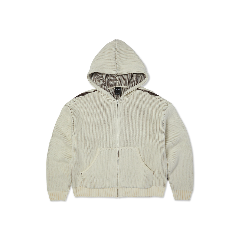 Le Token Zip Hooded Sweater de HUF est un pull zippé à capuche en maille épaisse 100 % coton (1450 g), idéal pour l'hiver. Artwork jacquard dans le dos, poches kangourou, zip intégral, poignets et ourlet côtelés en 1x1, et étiquette HUF tissée à la nuque : un mix parfait entre chaleur, confort et esthétique skatewear.