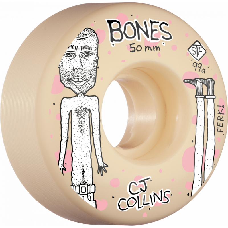 Découvrez le pro-model de CJ COLLINS de la marque BONES, sérigraphie sur le devant de la roue, modèle Ferk.
