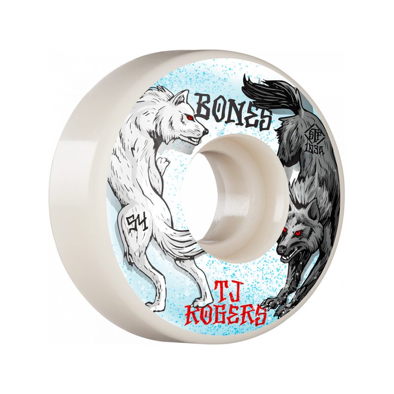Découvrez le pro-model de Tj ROGERS de la marque BONES, sérigraphie sur le devant de la roue, modèle Artic Battle.