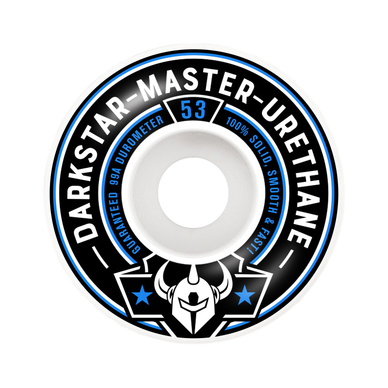 Roues pour skateboard de la marque Darkstar, sérigraphie sur le devant de la roue.