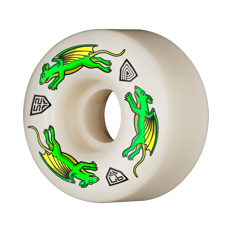 Roues pour skateboard de la marque Powell Peralta, modèle Dragon Rat, illustration sur le côte de la roue