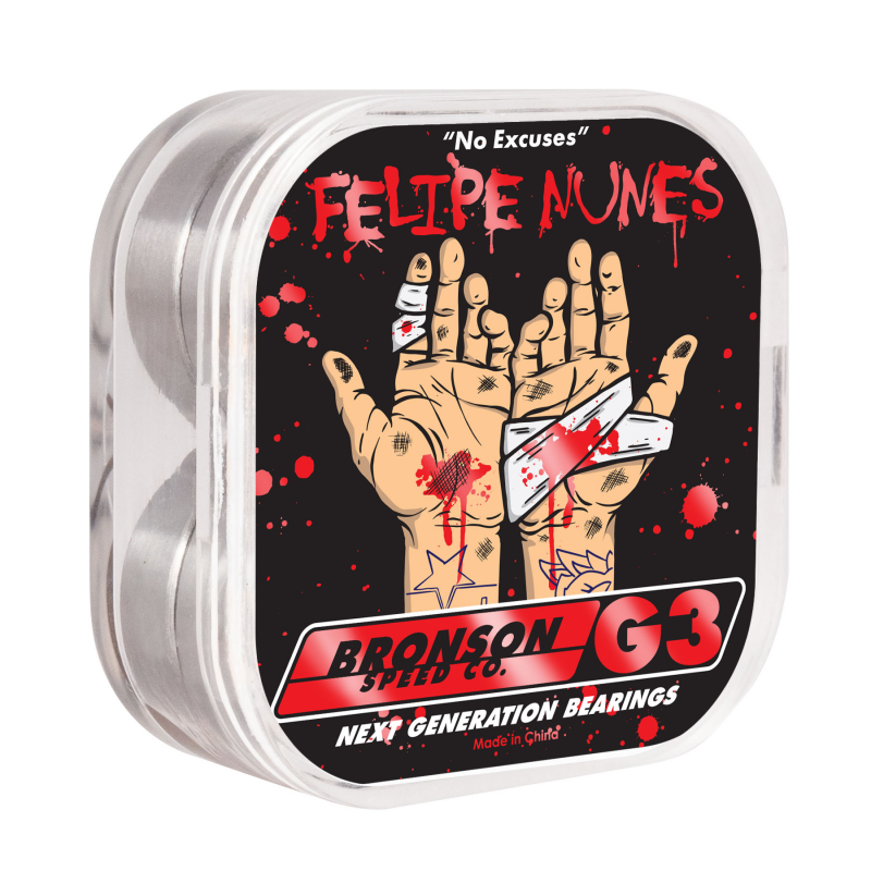 Roulement pour skateboard de la marque Bronson Speed Co, FELIPE NUNES signature, Construction G3.