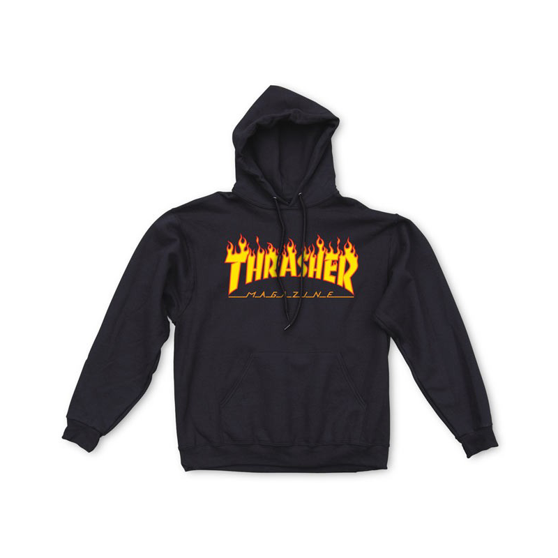 THRASHER SWEAT FLAME HOOD BLACK