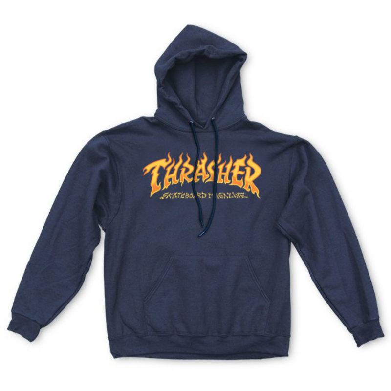 THRASHER SWEAT FIRE LOGO HOOD NAVY