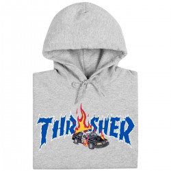 Sweat à capuche et poche centrale de la marque Thrasher, imprimé sur la poitrine, illustration dessinée par Neckface.