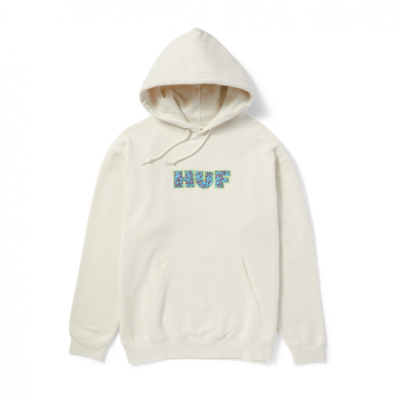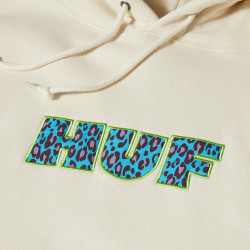 Sweat à capuche et poche centrale de la marque Huf avec un logo brodé sur la poitrine.