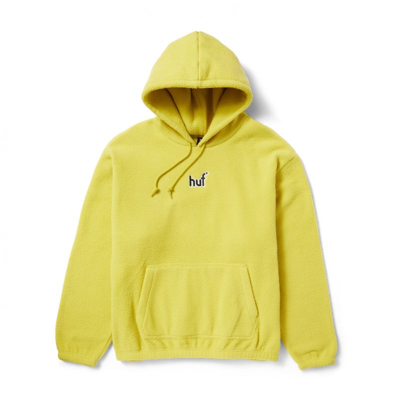 Sweat polaire à capuche et poche centrale de la marque Huf.Logo brodé devant.