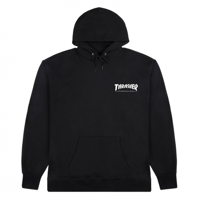 Sweat à capuche et poche centrale de la marque Thrasher, imprimé sur la poitrine.
