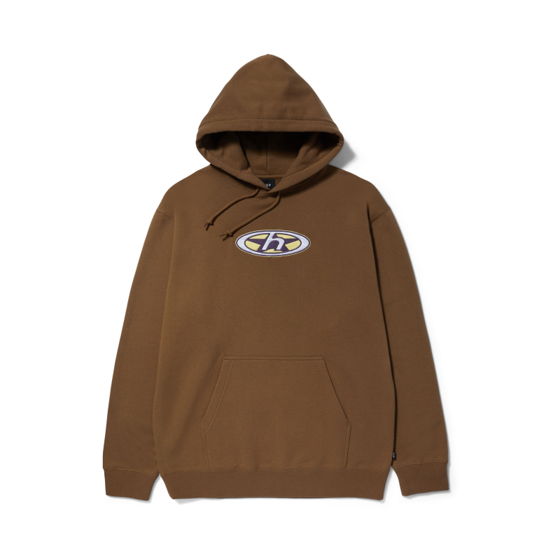 Sweat à capuche et manches longues de la marque Huf, illustration brodée sur la poitrine.