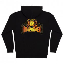 Sweat à capuche et zip central de la marque Independent, illustration imprimée devant et dans le dos du vêtement.