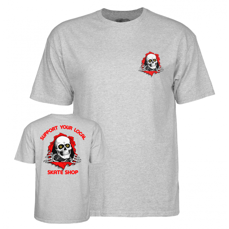 POWELL PERALTA T-SHIRT SUPPORT YOUR LOCAL SKATE SHOP GRAY